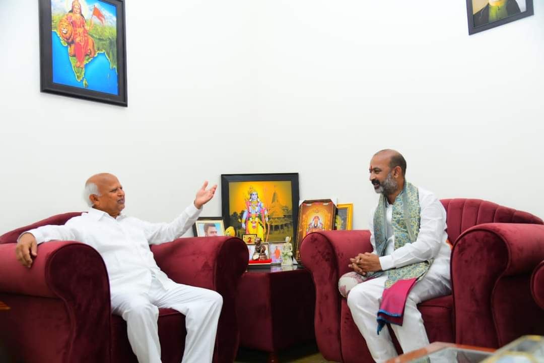 మంగళవారం అరుదైన సన్నివేశానికి వేదికైంది. భారతీయ జనతా పార్టీ చీఫ్ ,కరీంనగర్ ఎంపీ బండి సంజయ్ కుమార్(Bandi Sanjay) సంపర్క్ సే సమర్థన్ కార్యక్రమంలో భాగంగా హైదరాబాద్ శివారు లోని తుక్కుగూడకు వెళ్లారు. అక్కడికి సమీపంలోని శ్రీనగర్ గ్రామంలో ఉన్న మాజీ హోం శాఖ మంత్రి తూళ్ల దేవేందర్ గౌడ్ ను మర్యాద పూర్వకంగా కలుసుకున్నారు. ప్రస్తుతం ఆయన ఏ పార్టీలోనూ లేరు. కానీ బలమైన గౌడ్ సామాజిక వర్గానికి చెందిన నాయకుడిగా గుర్తింపు పొందారు.