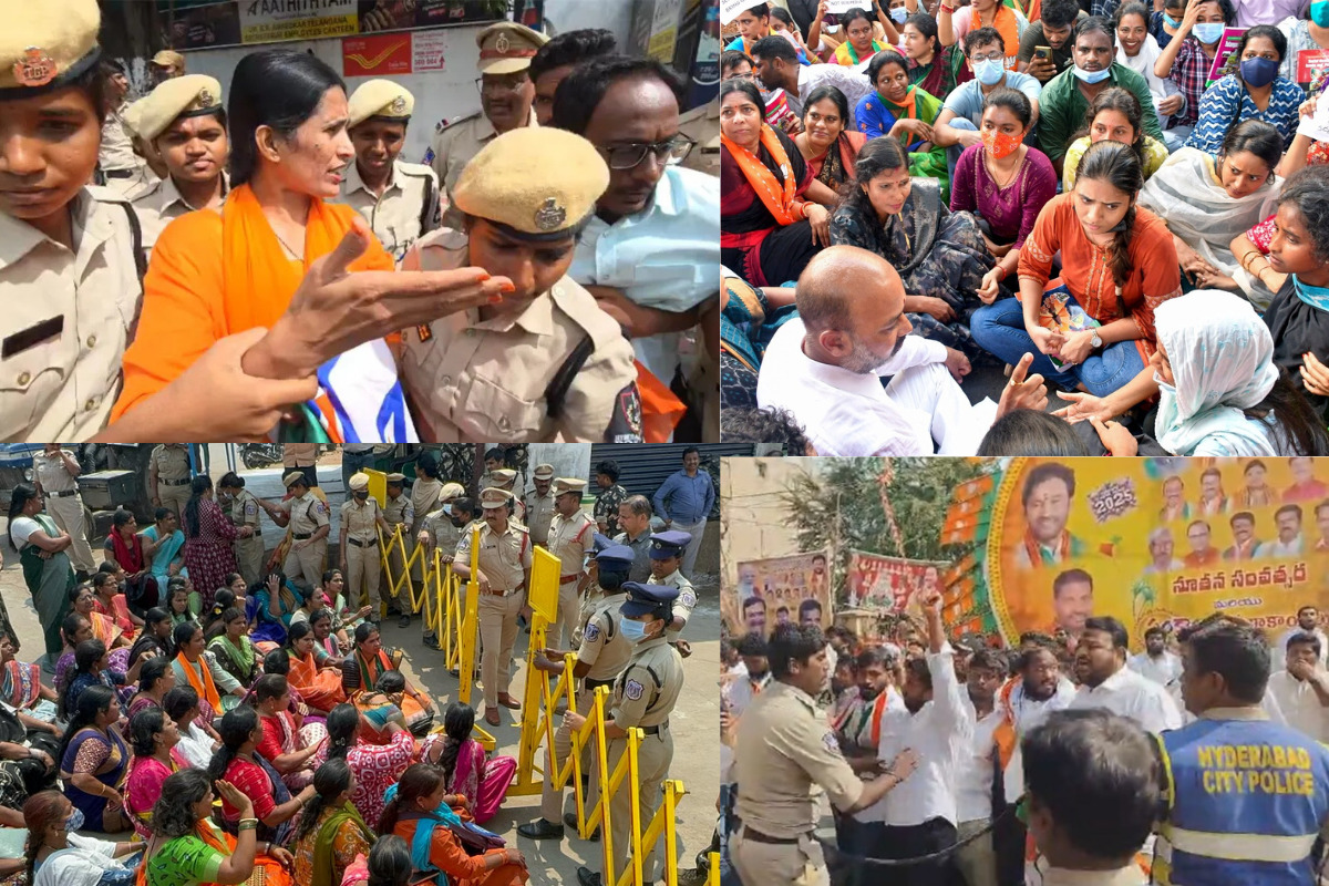 ఇక, హైదరాబాద్లో కరెంట్ తీగలు తగిలి ఇటీవల మరణాలు, డ్రైనేజీ సమస్యలు, గుంతల రోడ్ల అంశాలపై బీజేపీ నిరసనకు దిగింది. జీహెచ్ఎంసీ, హైడ్రా, జలమండలి విభాగాల మధ్య కో-ఆర్డినేషన్ లేక ఎక్కడి సమస్యలు అక్కడే అంటూ బీజేపీ ఆందోళన వ్యక్తం చేస్తోంది. నిరసనల నేపథ్యంలో ఇప్పటికే గ్రేటర్ పరిధిలో పలువురు బీజేపీ కార్పొరేటర్లు, నేతలను పోలీసులు హౌజ్ అరెస్టు చేశారు. నగర పరిధిలో బీజేపీ నాయకులు, కార్పొరేటర్లను పోలీసులు ముందస్తు అరెస్టులు చేశారు. తుర్కయాంజల్లోనూ నేతలను అదుపులోకి తీసుకున్నారు. వారిని అబ్దుల్లాపూర్ మెట్ పీఎస్కు తరలించారు. మరోవైపు సరూర్నగర్ కార్పొరేటర్ శ్రీవాణి సచివాలయం వైపు దూసుకెళ్లేందుకు యత్నించారు. ఆమెతో పాటు పలువురు నాయకులను పోలీసులు అరెస్టు చేశారు.