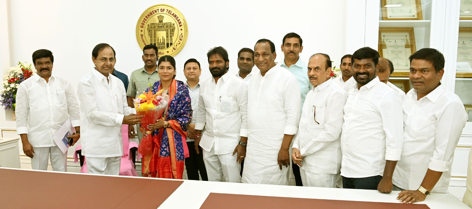 సీఎంతో నిఖ‌త్ జ‌రీన్ మ‌ర్యాద పూర్వ‌కంగా క‌లుసుకున్నారు. శిక్ష‌ణ‌, కోచింగ్, ర‌వాణా, త‌దిత‌ర ఖ‌ర్చుల‌ను స‌ర్కారే భ‌రిస్తుంద‌న్నారు. రూ. 2 కోట్ల‌ను ఇస్తున్న‌ట్లు ప్ర‌క‌టించారు సీఎం కేసీఆర్.