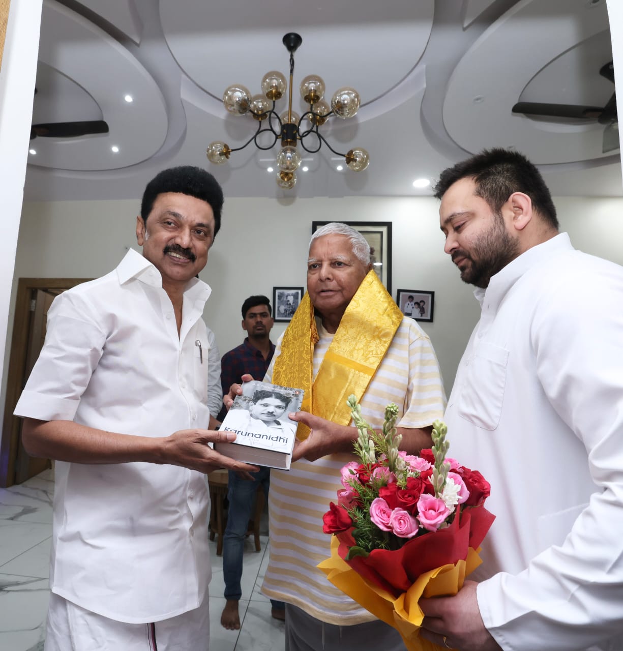 ట్విట్టర్ వేదికగా సీఎం లాలూతో కలిసిన విషయాన్నిపంచుకున్నారు. సామాజిక న్యాయ జ్యోతిని ఉన్నతంగా పట్టు కోవాలని ఆకాంక్షించారు. అందరికీ మార్గ నిర్దేశం చేయాలని ఆయన బాగుండాలను తాను కోరుకుంటున్నట్లు తెలిపారు ఎంకే స్టాలిన్(MK Stalin).