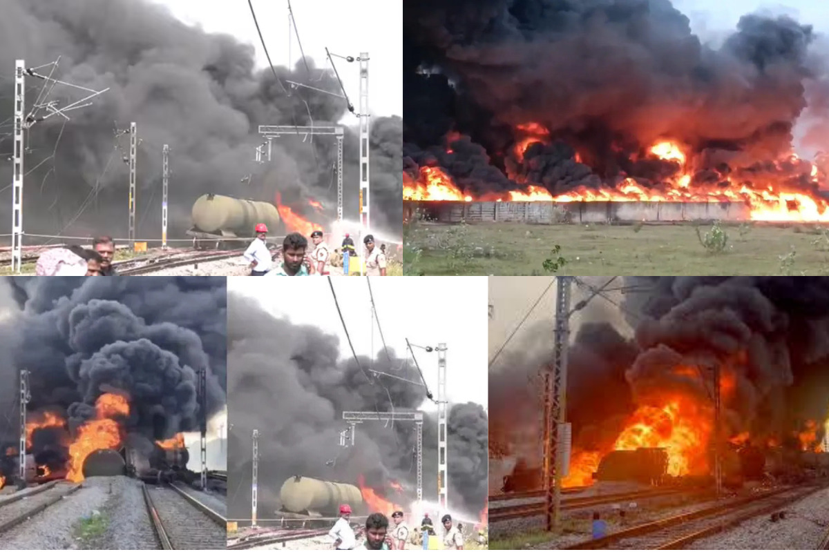 చెన్నై (Chennai) పోర్టు నుంచి బెంగళూరుకు ఇండియన్ ఆయిల్ కు చెందిన మొత్తం 52 వ్యాగన్లతో వెళ్తున్న గూడ్స్ రైలుకు ఆదివారం తెల్లవారుజామున మంటలు అంటుకున్నాయి. వెంటనే ఘటనా స్థలానికి చేరుకున్న అగ్నిమాపక సిబ్బంది మంటలు అదుపు చేసేందుకు తీవ్రంగా ప్రయత్నిస్తున్నారు. తొలుత రైలు పట్టాలు తప్పిన తర్వాత మంటలు చెలరేగాయని అధికారులు తెలిపారు. ఐదు వ్యాగన్లకు మంటలు వ్యాపించినట్లు సమాచారం. మంటలు పెద్ద ఎత్తున ఎగసిపడుతుండటంతో ఆ ప్రాంతమంతా దట్టమైన పొగ కమ్ముకుంది. రైలులో ఇంధనం ఉండటంతో మంటలు మరింత వ్యాపిస్తాయని స్థానికులు ఆందోళన చెందుతున్నారు. తిరువళ్ళూరు ఎస్టీ కాలనీ, వరదరాజ నగర్కు చెందిన 300 కుటుంబాలను జిల్లా అధికారులు ఖాళీ చేయించారు. ఘటనా స్థలానికి తిరువళ్ళూరు కలెక్టర్ ప్రతాప్, ఎస్పీ శ్రీనివాస్ పెరుమాళ్, రైల్వే డీఆర్ఎం విశ్వనాథన్ చేరుకున్నారు. దీంతో సమీప ప్రాంతాల్లోని ప్రజలను అధికారులు అప్రమత్తం చేశారు. వారిని అక్కడి నుంచి తరలించడంతో పాటు, సమీప ఇళ్లలోని సిలిండర్లను తొలగిస్తున్నారు. ముందు జాగ్రత్త చర్యగా విద్యుత్ కూడా నిలిపివేశారు.