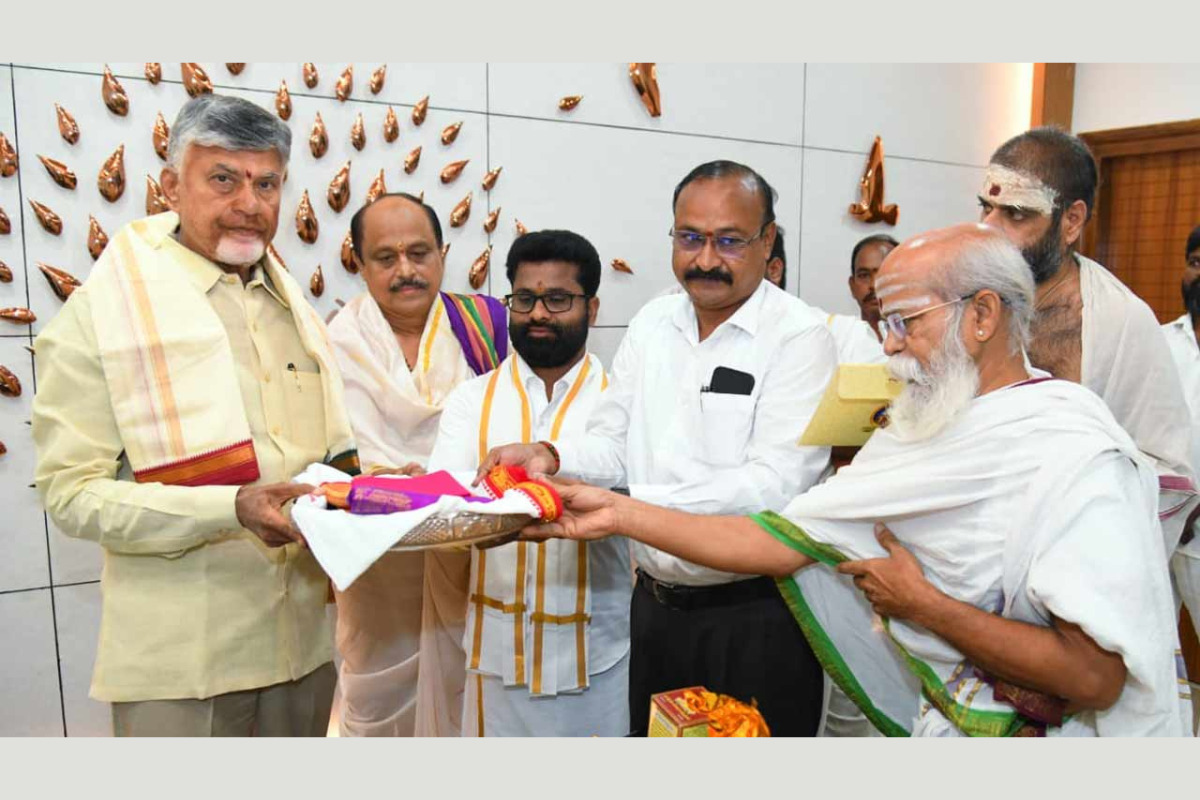 CM Chandrababu : ఇంద్రకీలాద్రిపై కొలువైన శ్రీదుర్గామల్లేశ్వర స్వామి వారి దేవస్థానంలో జరిగే దసరా మహోత్సవాలకు సీఎం నారా చంద్రబాబు నాయుడిని దేవస్థానం ఉన్నతాధికారులు, అర్చకులు ఆహ్వానించారు. మంగళవారం సీఎం క్యాంపు కార్యాలయంలో ముఖ్యమంత్రి చంద్రబాబుకు (CM Chandrababu) వారు ఆహ్వాన పత్రాన్ని అందజేశారు. ఈ సందర్భంగా సీఎం చంద్రబాబును అర్చకులు తీర్థ ప్రసాదాలు అందజేసి.. ఆశీర్వదించారు. ఈ కార్యక్రమంలో దుర్గ గుడి ఈవో శీనా నాయక్, దేవాదాయ శాఖ కమిషనర్ రామచంద్రమోహన్తోపాటు అర్చకులు పాల్గొన్నారు.