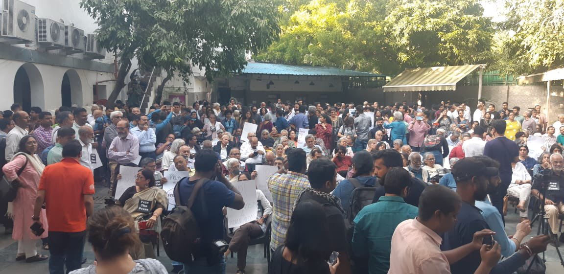 న్యూస్ క్లిక్(NewsClick) పూర్తిగా ప్రజల కోసం పని చేస్తోందని, ఎవరూ దేశానికి వ్యతిరేకంగా వార్తలు రాయడం లేదని పేర్కొన్నారు. మీడియాపై కక్ష కట్టి కేసులు నమోదు చేయడం, నిధుల పేరుతో దాడులకు పాల్పడడం దారుణమన్నారు . న్యూఢిల్లీలో పెద్ద ఎత్తున జర్నలిస్టులు గుమి గూడారు.