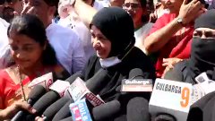 విద్యా సంస్థల్లోకి హిజాబ్ ధరించి వెళ్ల కూడదంటూ బొమ్మై సర్కార్ నిషేధం విధించింది. దీనిని నిరసిస్తూ కాలబురగి జిల్లా కలెక్టరేట్ ఎదుట విద్యార్థినులతో కలిసి కాంగ్రెస్ నాయకురాలు కనీజ్ ఫాతిమా ఆందోళన చేపట్టారు.