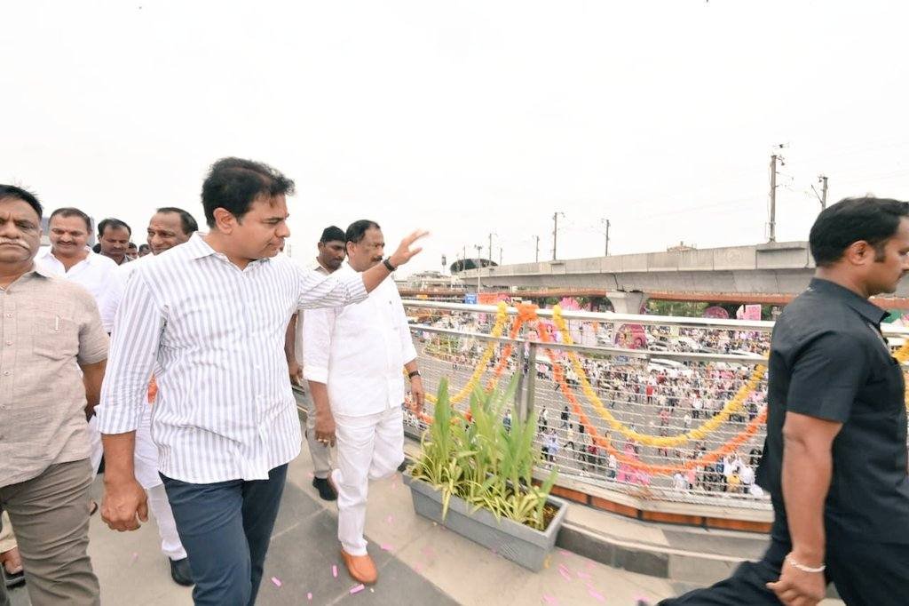 యావత్ దేశంలో ఎక్కడా లేని రీతిలో తెలంగాణ అన్ని రంగాలలో దూసుకు పోతోందన్నారు. పాదచారులకు ఎలాంటి ఇబ్బందులు లేకుండా ఇక్కడ స్కైవాక్ నిర్మించడం జరిగిందని చెప్పారు. రహదారుల నిర్మాణం అభివృద్దికి సోపానంగా ఉంటుందనే తాము గుర్తించామన్నారు. ప్రజలకు సేవ చేయడంలో బీఆర్ఎస్ ఎల్లప్పుడూ ముందంజలో నిలిచి ఉందని తెలిపారు కేటీఆర్.