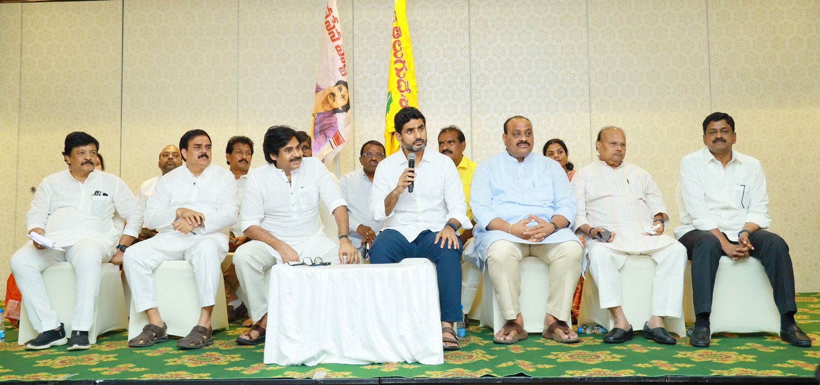అస్థిర ఆంధ్రప్రదేశ్ ను స్వర్ణాంధ్రగా మార్చడమే తమ ఉమ్మడి లక్ష్యమని స్పష్టం చేశారు లోకేష్(Nara Lokesh). మీటింగ్ ముగిసిన అనంతరం నారా లోకేష్ మీడియాతో మాట్లాడారు. వైసీపీ అధికారంలోకి వచ్చిన దగ్గర నుంచి అన్ని వర్గాలకీ సమస్యలే ఉన్నాయని పేర్కొన్నారు.