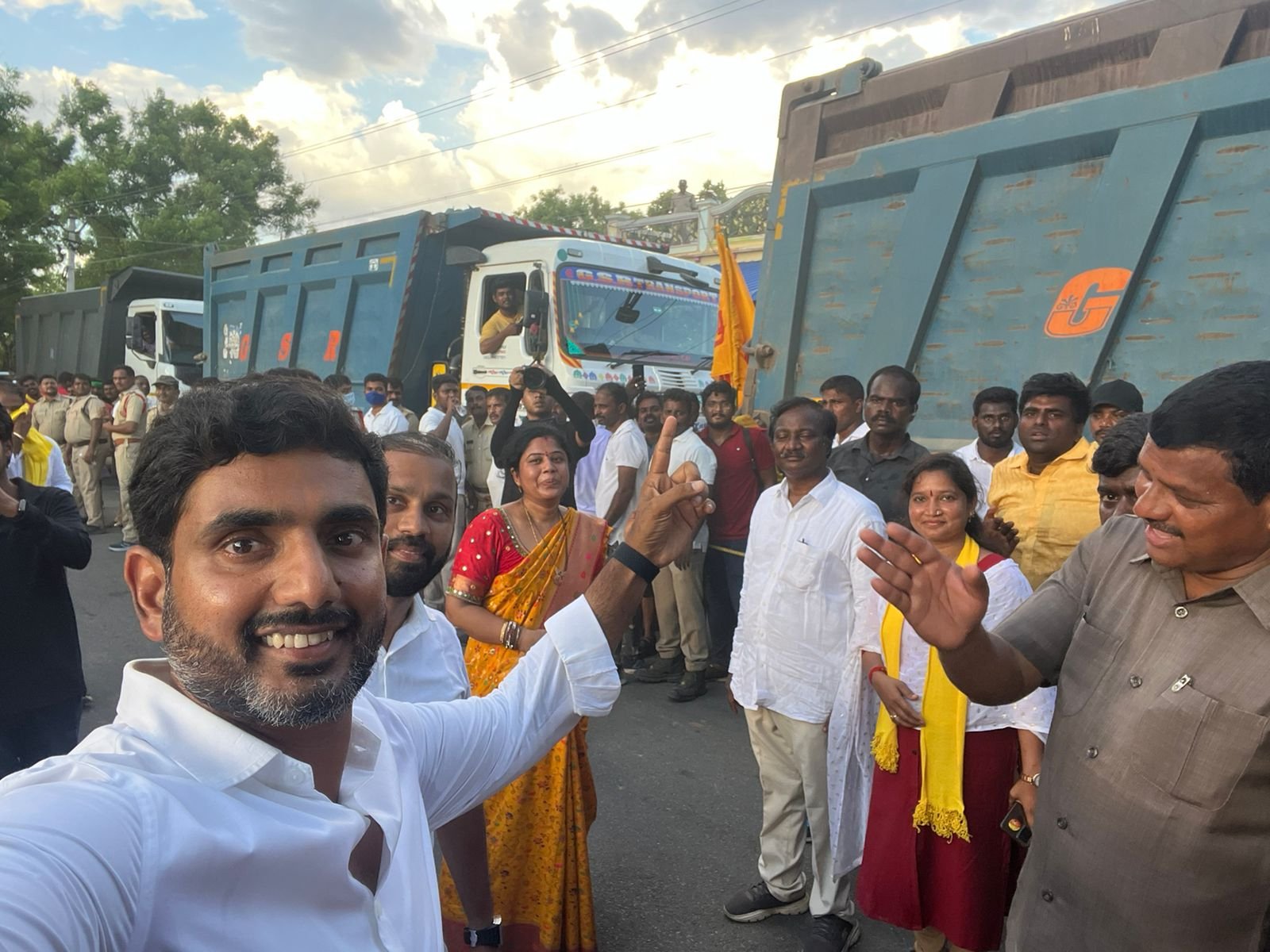 జగన్ పాలనలో దోపిడీ రాజ్యం కొనసాగుతోందన్నారు. అడిగితే దాడులు, ప్రశ్నిస్తే కేసులు నమోదు చేయడం పనిగా పెట్టుకున్నారంటూ ధ్వజమెత్తారు నారా లోకేష్(Nara Lokesh). ప్రజలు నెత్తీ నోరు మొత్తుకున్నా పట్టించు కోవడం లేదంటూ ఫైర్ అయ్యారు. టిప్పర్ డ్రైవర్ ను అడిగితే బెంగళూరుకు తరలిస్తున్నామని సమాధానం ఇచ్చారని చెప్పారు లోకేష్. జగన్ పాలనలో ఇంకెన్నిసిత్రాలు చూడాలో అని ఆయన ఎద్దేవా చేశారు. ఇందుకు సంబంధించిన ఫోటో ప్రస్తుతం వైరల్ గా మారింది.