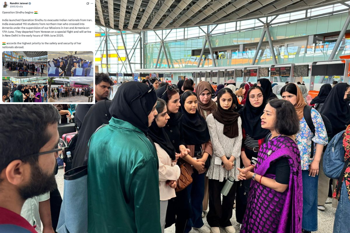 ‘ఆపరేషన్ సింధు (Operation Sindhu)’ లో భాగంగా తొలి దఫాగా జూన్ 17న ఉత్తర ఇరాన్ (Iran) నుంచి అక్కడి భారత రాయబార కార్యాలయం విజయవంతంగా అర్మేనియాకు తరలించిన 110 మంది భారతీయ విద్యార్థులను భారత్ కు తీసుకువస్తున్నారు. అర్మేనియా క్యాపిటల్ సిటీ యెరవాన్ నుంచి బుధవారంనాడు ప్రత్యేక విమానంలో న్యూఢిల్లీకి వీరు బయలుదేరారు. ఈ విమానం గురువారం తెల్లవారుజామున ఢిల్లీకి చేరుకుంటుందని కేంద్ర విదేశాంగ శాఖ అధికార ప్రతినిధి రణధీర్ జైశ్వాల్ తెలిపారు. ఈ సందర్భంగా విదేశాల్లో ఉన్న తన పౌరుల భద్రతకు భారత్ అత్యధిక ప్రాధాన్యం ఇస్తుందని జైశ్వాల్ స్పష్టం చేసారు.