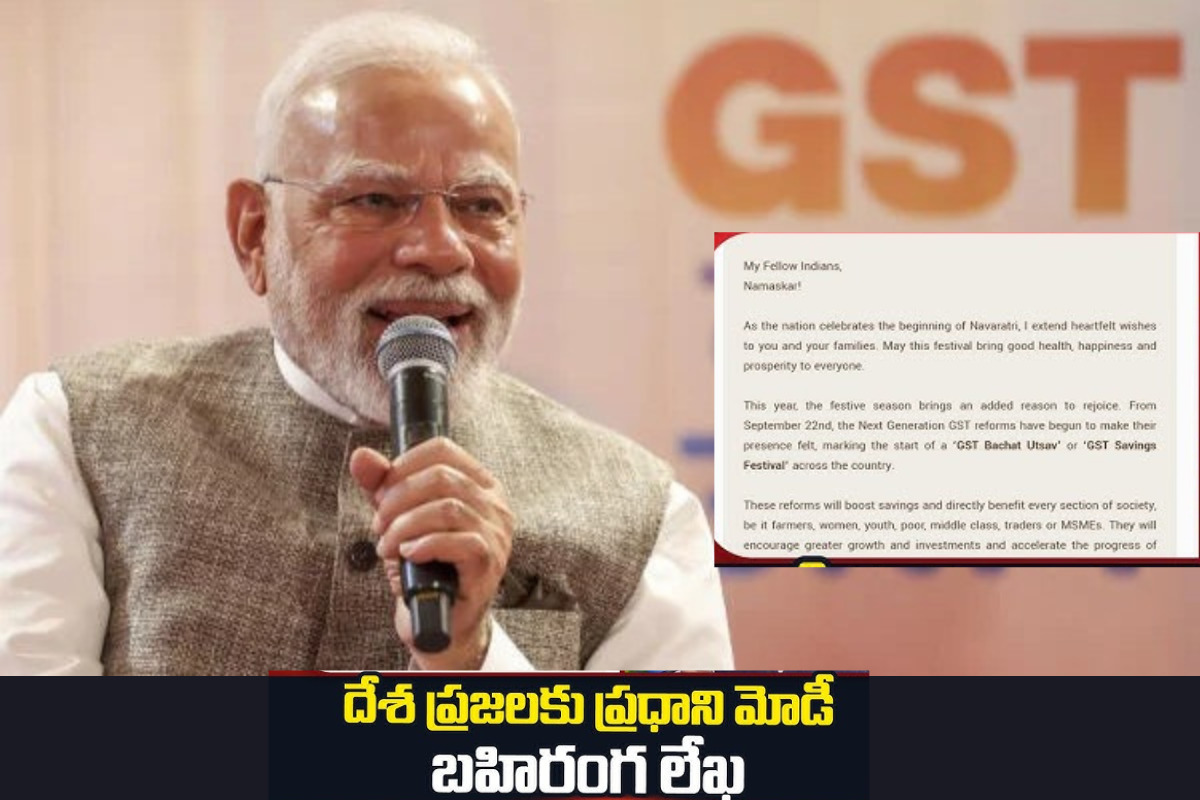 2017లో ప్రారంభమైన జీఎస్టీ ప్రయాణం దేశాన్ని ఆర్థికంగా ఏకం చేసిందని మోదీ చెప్పారు. ఒక దేశం, ఒక పన్ను” విధానం ఏకరూపతను, ఉపశమనాన్ని తీసుకొచ్చింది. ఈ కొత్త సంస్కరణలు దేశీయ తయారీ రంగాన్ని బలోపేతం చేస్తాయి. ఆత్మనిర్భర్ భారత్ వైపు అడుగులు వేయడానికి దోహదం చేస్తాయి. దేశంలో నూతన GST సంస్కరణలు అమలులోకి రావడంతో తగ్గిన జీఎస్టీ రేట్లు 375 వస్తువులపై వర్తిస్తాయి. ఆటోమొబైల్స్ నుంచి రోజువారీ వినియోగ వస్తువుల వరకు ఈ జీఎస్టీ తగ్గింపు జరిగింది’’ ప్రధాని మోదీ లేఖలో వివరించారు.