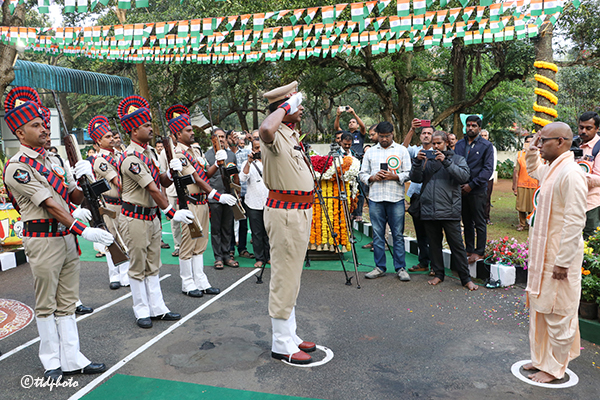 తిరుమల : టీటీడీలో పాలసీ ఆధారిత పాలన సాగిస్తున్నామని స్పష్టం చేశారు టీటీడీ అడిషనల్ ఈవో వెంకయ్య చౌదరి. సోమవారం 77వ గణతంత్ర దినోత్సవం సందర్బంగా జాతీయ జెండాను ఆవిష్కరించారు. ఈ సందర్బంగా ప్రసంగించారు. టీటీడీ కూడా ఒక పురాతన, మహత్తర ధార్మిక సంస్థగా కాలానుగుణంగా తన వ్యవస్థలను పునః పరిశీలిస్తూ, భక్తుల అవసరాలకు అనుగుణంగా సంస్కరణలు చేపడుతోందని చెప్పారు. ఒకటిన్నర సంవత్సరాల్లో టీటీడీలో అన్నప్రసాద విభాగం పాలసీలో అనేక విప్లవాత్మక మార్పులు తీసుకొచ్చామని పేర్కొన్నారు. కాటేజ్ డొనేషన్ స్కీమ్ లో సమగ్ర పాలసీ తీసుకు రావడానికి విశేష కృషి చేశామని తెలిపారు. ఇతర పాలసీలను కూడా పటిష్టం చేసేందుకు ప్రణాళిక బద్ధంగా చర్యలు చేపడతామని అన్నారు.