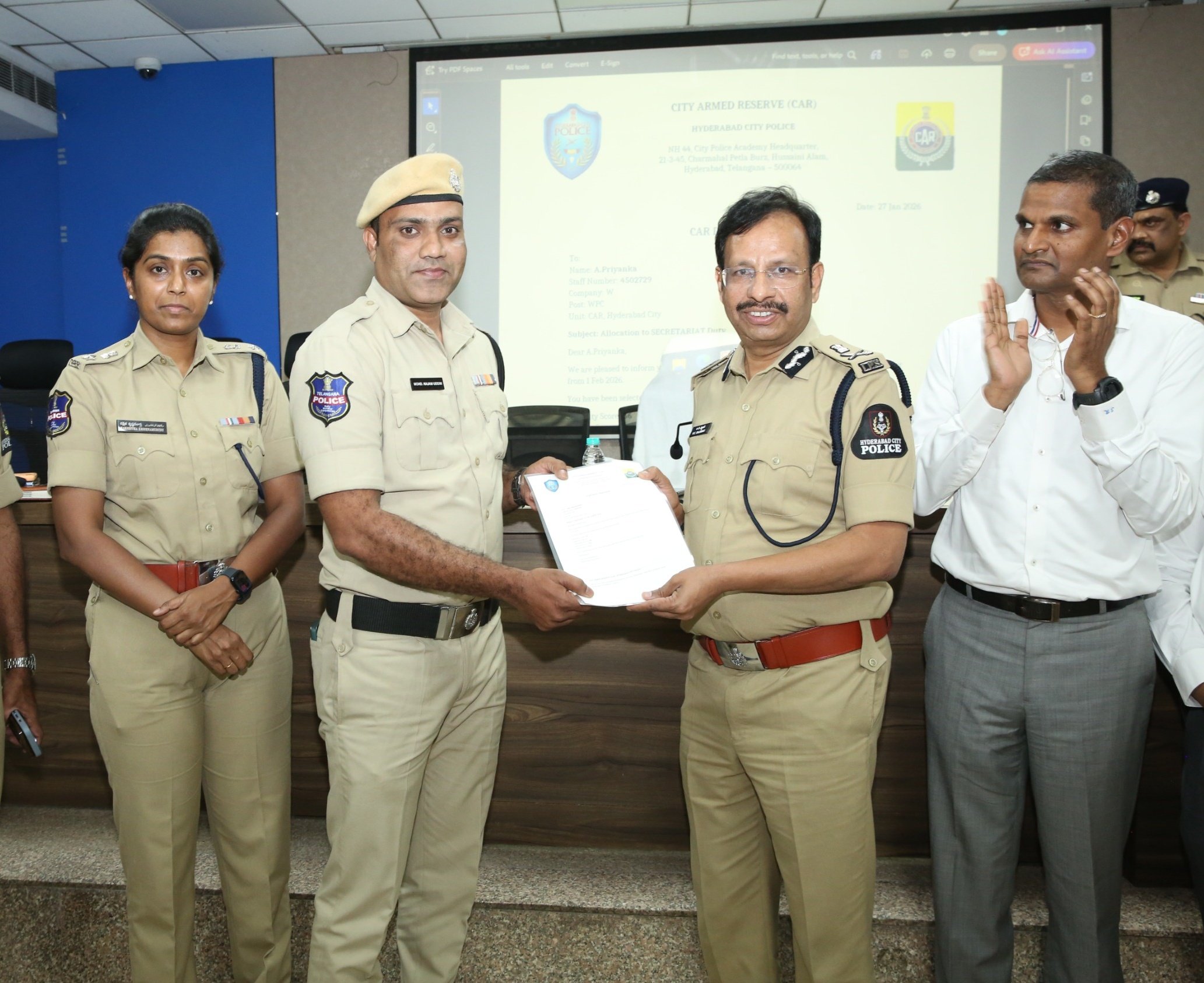 ఈ విధానం ద్వారా పైలట్ ప్రాజెక్ట్ కింద 1,796 దరఖాస్తులను పరిశీలించి.. సెక్రటేరియట్, సీఎం ఆఫీస్, ట్రాఫిక్ తదితర విభాగాలతో పాటు ఇంటర్సెప్టర్ వాహనాలకు సంబంధించిన 208 డ్యూటీలను సమర్థంగా కేటాయించడం జరిగిందన్నారు. పోలీస్ సిబ్బందికి విధుల కేటాయింపును పారదర్శకంగా, జవాబుదారీతనంతో మార్చడం కోసమే అత్యాధునిక ‘జనరేటివ్ ఏఐ’ విధానాన్ని ప్రారంభించామని తెలిపారు. ఈ విధాన రూపకల్పనలో కీలకపాత్ర పోషించిన హన్ష ఈక్విటీ పార్ట్నర్స్ ఎల్ఎల్పీకి చెందిన త్రినాథ బాబుని, సునీల్ రేగులని ఈ సందర్బంగా అభినందించారు.