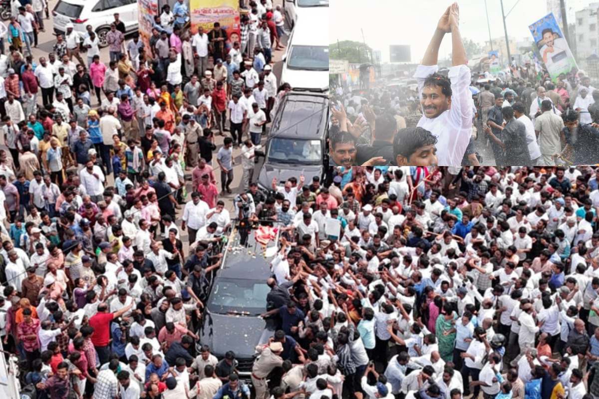 YS Jagan : వైసీపీ అధినేత, మాజీ ముఖ్యమంత్రి వైఎస్ జగన్మోహన్ రెడ్డి (YS Jagan) విశాఖ, అనకాపల్లి జిల్లాల్లో గురువారం పర్యటించారు. విశాఖ ఎయిర్ పోర్టు నుండి నర్సీపట్నం (Narsipatnam) మెడికల్‌ కాలేజీ సందర్శన కోసం రోడ్డు మార్గంలో బయలుదేరిన జగన్‌ కు వైసీపీ నాయకులు, కార్యకర్తలు అడుగడుగునా నీరాజనం పట్టారు. పోలీసుల ఆంక్షలు ఛేదించుకుని అంతా కదలి వచ్చారు. విశాఖ స్టీల్‌ ప్లాంట్‌ ఉద్యోగులతో పాటు, పలువురు తమ సమస్యలపై వినతిపత్రాలు సమర్పించారు. విశాఖ ఎయిర్‌పోర్టు నుంచి ఎన్‌ఏడీ జంక్షన్, వేపగుంట, పెందుర్తి, కొత్తూరు జంక్షన్, తాళ్ళపాలెం జంక్షన్‌ మీదుగా అనకాపల్లి జిల్లా భీమబోయినపాలెం వరకు సుమారు 60 కి.మీ మేర జనాలు స్వాగతం పలికారు. భారీ వర్షాన్ని సైతం లెక్క చేయకుండా జగన్ (YS Jagan) కు బ్రహ్మరథం పట్టారు. నేరుగా నిర్మాణంలో ఉన్న నర్సీపట్నం (Narsipatnam) మెడికల్ కాలేజీ కు చేరుకున్న జగన్… ప్రతిపాదిత మెడికల్ కాలేజీ నిర్మాణాలను పరిశీలించారు.